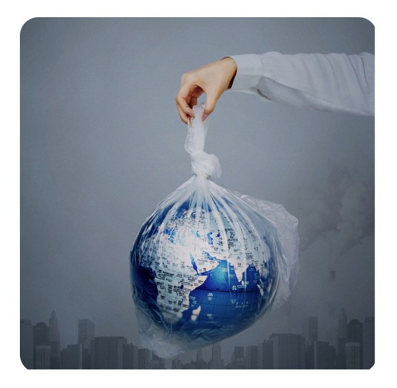 Discarded plastic bags and film waste are collected as the starting material for recycling.